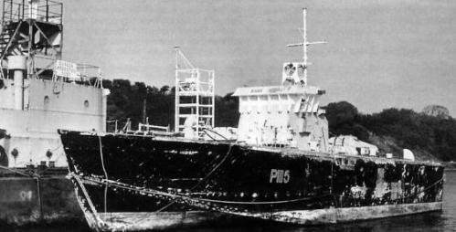 The Finnish navy ordered 2 Dark class types of Motor Gun Boats from Messrs Saunders Roe at the end of 1955. The colour shot above is of the pair during sea trials off the coast of Anglsea Nth Wales. They were named 'Vasama 1' and 'Vasama 2'. the English translation of the word 'Vasama' is 'Arrow'. (Picture courtesy of Ted Else via Dave Abbot) |