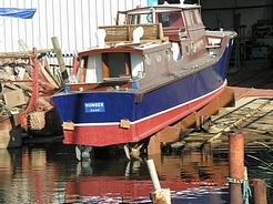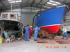 The engines have been repaired and serviced, the underwater hull repaired and antifouled, the hull polished and the deck and accommodation sanded down and painted.