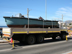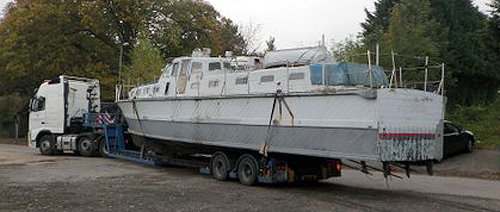 Hyperion trailered up and en route from Swanick in Southampton, to the West country, and a new home.See history here