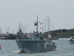MGB 81 under way, using 2 engines, at the Southampton Boat show. The centre engine is unserviceable at this time.