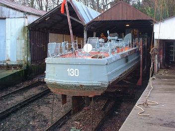 All above waterline exhaust outlets were bunged. The boat has been painted both underwater as well as above, and please excuse the colour if it is not exact, but costs have to be kept down. The numerals were placed at about the average position , which we obtained from the various pics on web sites.All the paint work was done by Trust volunteers, whilst the repair work was carried out by Hythe Marine Services.