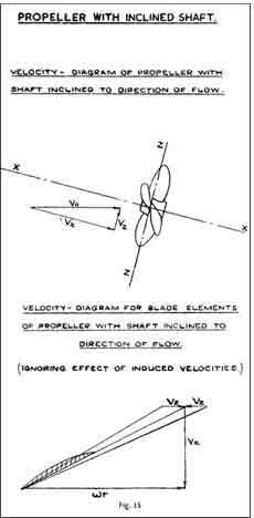 It is of passing interest that in fact the propulsive efficiency of the propeller is fractionally greater for the case of the inclined shaft, though a satisfactory explanation of this phenomenon has not so far been arrived at. It is possible that after further investigation more may be gained in the future by using one of the specially designed sections (Refs. 5, 10).
