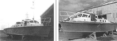 Teak was used for the side and bottom planking. The side planking was 11/16 inch in total thickness laid double diagonally, the inner skin was 3/4 inch thick and the outer 7/16 inch. The bottom planking was 3/4 inch in total thickness, with the inner layer 1/4 inch and the outer skin ½ inch thick. The deck superstructure was fabricated from aluminium-alloy riveted and welded. It covered the wheelhouse, galley and W/T compartment and cabin. Windows were fitted in the front, rear and sides of the superstructure, with standard portlights fitted for the W/T room, galley and toilet compartments. The interior surface was insulated with 1½ inch Isoflex covered by 1/8 inch thick plywood lining.