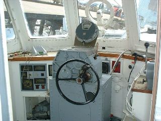 Inside bridge. Steering rod and chain to a quadrant looks to be in good order.