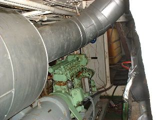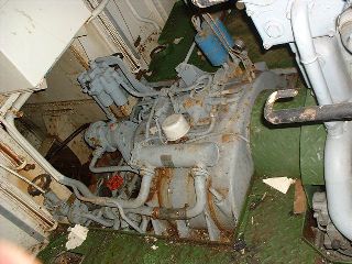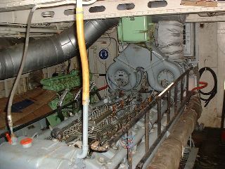 Aft engine room, gearbox, main engine to centre shaft. May 2004