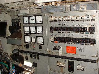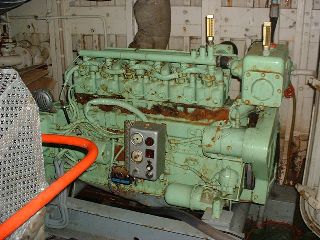Centre engine room, looking aft through engine room door, at generator. May 2004.