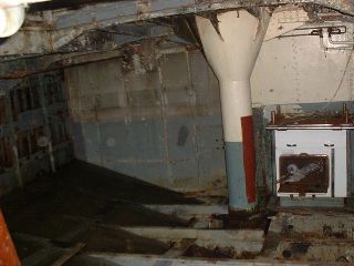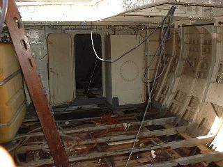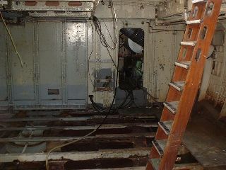 Looking at bulkhead below after end of bridge wheelhouse. May 2004