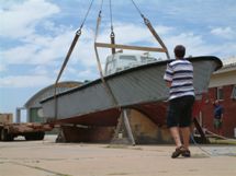 In June 2004, Peter van der Linden the owner of Goose Adventures was contacted by Guy Ellis from the OBT (Old Boat Trust) and informed that ST-433 was going to be destroyed and whether we would be interested in taking her and restoring her for future use as an original Seaplane Tender for our proposed return of a luxury Flying Boat to SA in 2005. Although not having any interest in boats, Peter accepted the challenge and after extensive research and appealing to many for assistance, his interest grew to a point where he devoted most of his spare time to the saving and restoration of ST-433. With appeals to companies for sponsorship, advice and assistance he finally managed to have the ST moved back to Cape Town where she was housed at the SAAF Ysterplaat Museum for restoration.