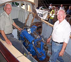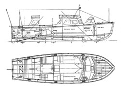 Thereafter, Vosper, Thornycroft and Whites built numbers of 25ft FMBs all to their own designs. At the outbreak of WWII, these designs were built by other builders such as Brooke Marine, Aldous and others and like their predecessors all utilised petrol engines either of the Power Meadows or Vosper V8 types. Some of the earlier variants were carvel built, however by 1940 the standard Admiralty clinker hulled 25 ft FMB had evolved and was being built in great numbers by numerous builders. Boats from 1941 onwards were built with single Perkins P6M diesels; this type subsequently became the standard for most Admiralty FMBs. Dimensions, as listed in Admiralty documents, varied, - however those quoted are for FMB 441341. |